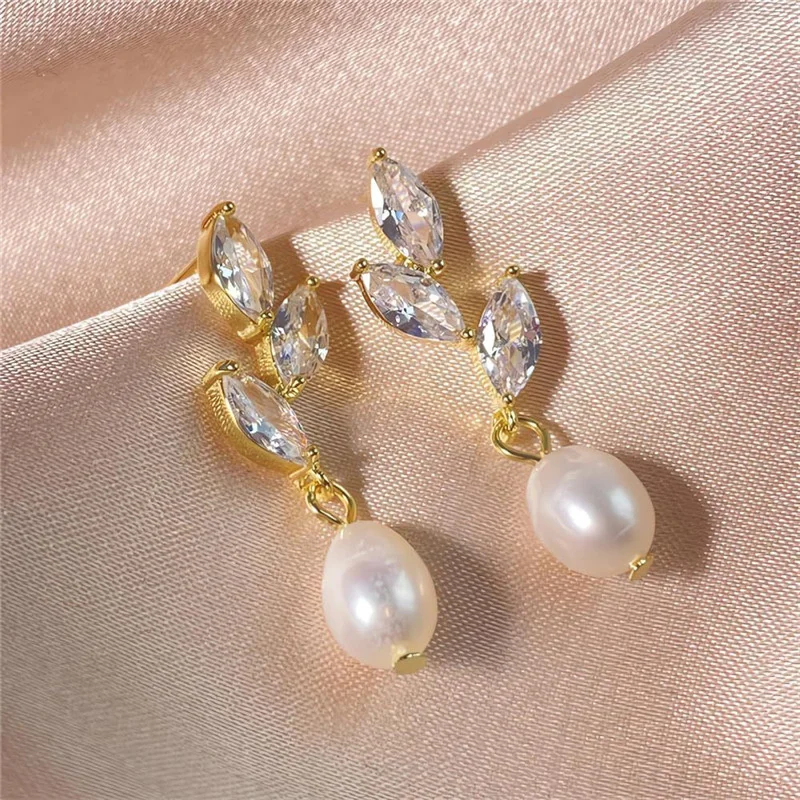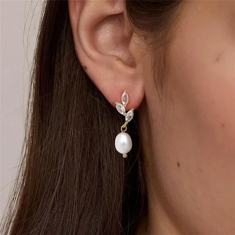 Luxury Water Drop Imitation Pearl Drop Stud Earrings For Women Girls White Crystal Zircon Earring  Wedding Festival Jewelry Gift